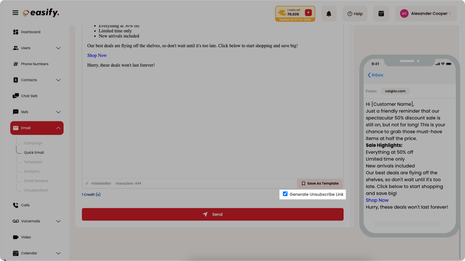 5. Check the box to Generate Unsubscribe Link and stay compliant.